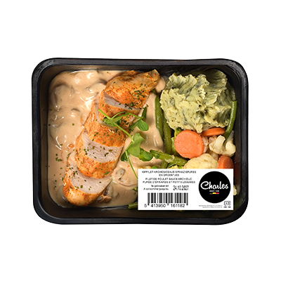 )Filet de poulet tendre nappé d’une sauce Archiduc onctueuse, accompagné d’une purée d’épinards moelleuse et d’un mélange de légumes croquants. Un plat équilibré et savoureux qui allie confort et raffinement.