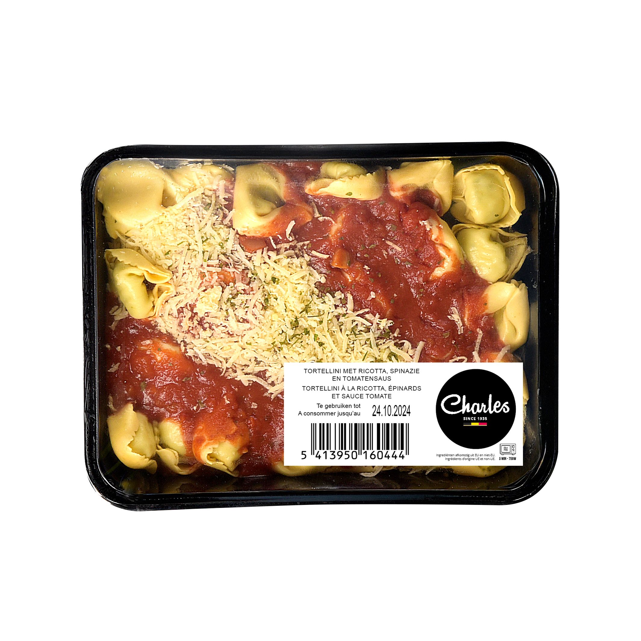 Tortellini à la ricotta, épinards et sauce tomate